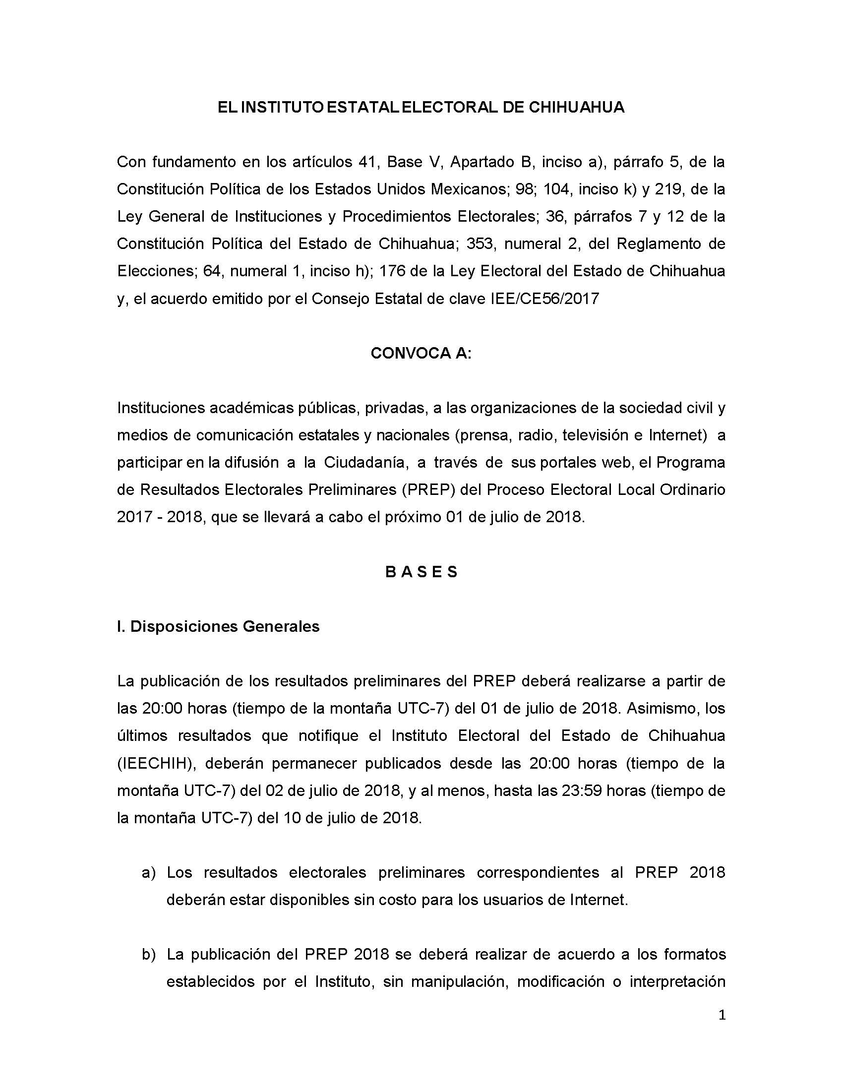 Instituciones interesadas en participar en la difusión a la Ciudadanía, a través de sus portales web, del Programa de Resultados Electorales Preliminares (PREP) del Proceso Electoral Local Ordinario 2017 - 2018.