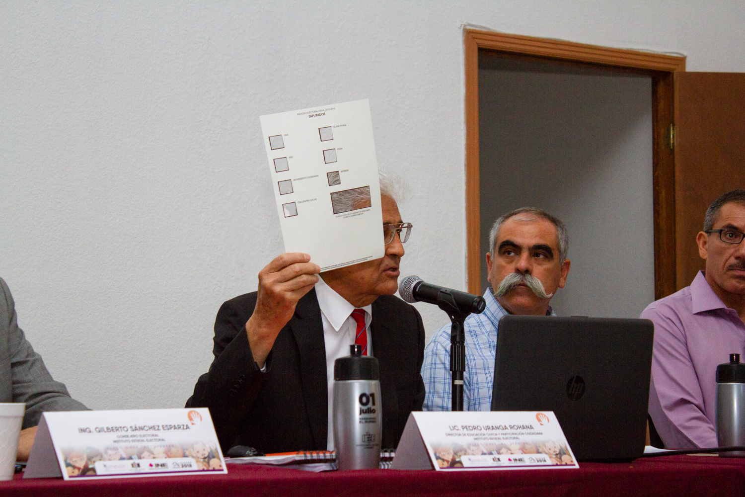 Por parte del IEE, estuvieron presentes la Consejera Electoral Julieta Fuentes Chávez, los Consejeros Electorales Gilberto Sánchez Esparza y Saúl Rodríguez Camacho, así como el anfitrión, Pedro Uranga Rohana, director ejecutivo de Educación Cívica y Participación Ciudadana.