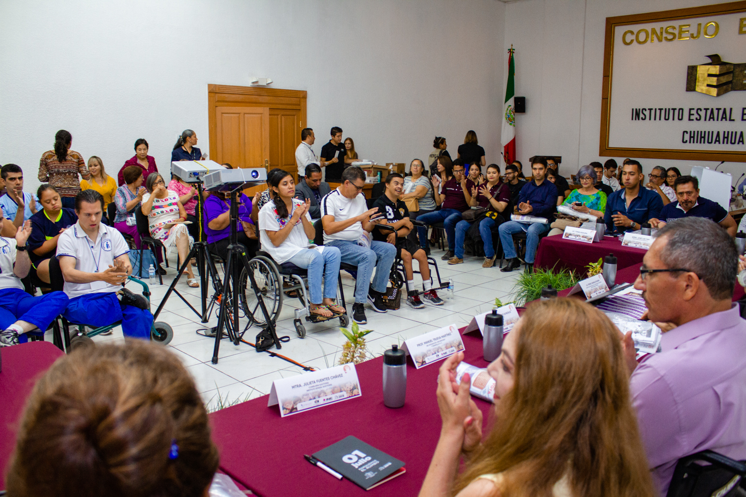 Entre las y los asistentes estuvieron: María Eugenia Falomir Morales, de la Dirección de Atención a Grupos Vulnerables; Manuel Trueva Martínez, de la Red Integración, Discapacidad y Desarrollo A.C.; José Luis Armendáriz, presidente de la Comisión Estatal de los Derechos Humanos; Rosa Alva Rodríguez, Realyvázquez, del Instituto Down de Chihuahua A.C.; Cecilia González Rusek, del Instituto José David A.C.; José Luis Tam, del Centro de Estudios para Invidentes A.C.; Leonardo Muñoz Valera, de la Asociación de Intérpretes y Traductores del Estado de Chihuahua; María del Carmen Calleros Ochoa, de Jóvenes en Movimiento A.C. y Tomás Aguilera, del Instituto Estatal del Deporte y Cultura Física.